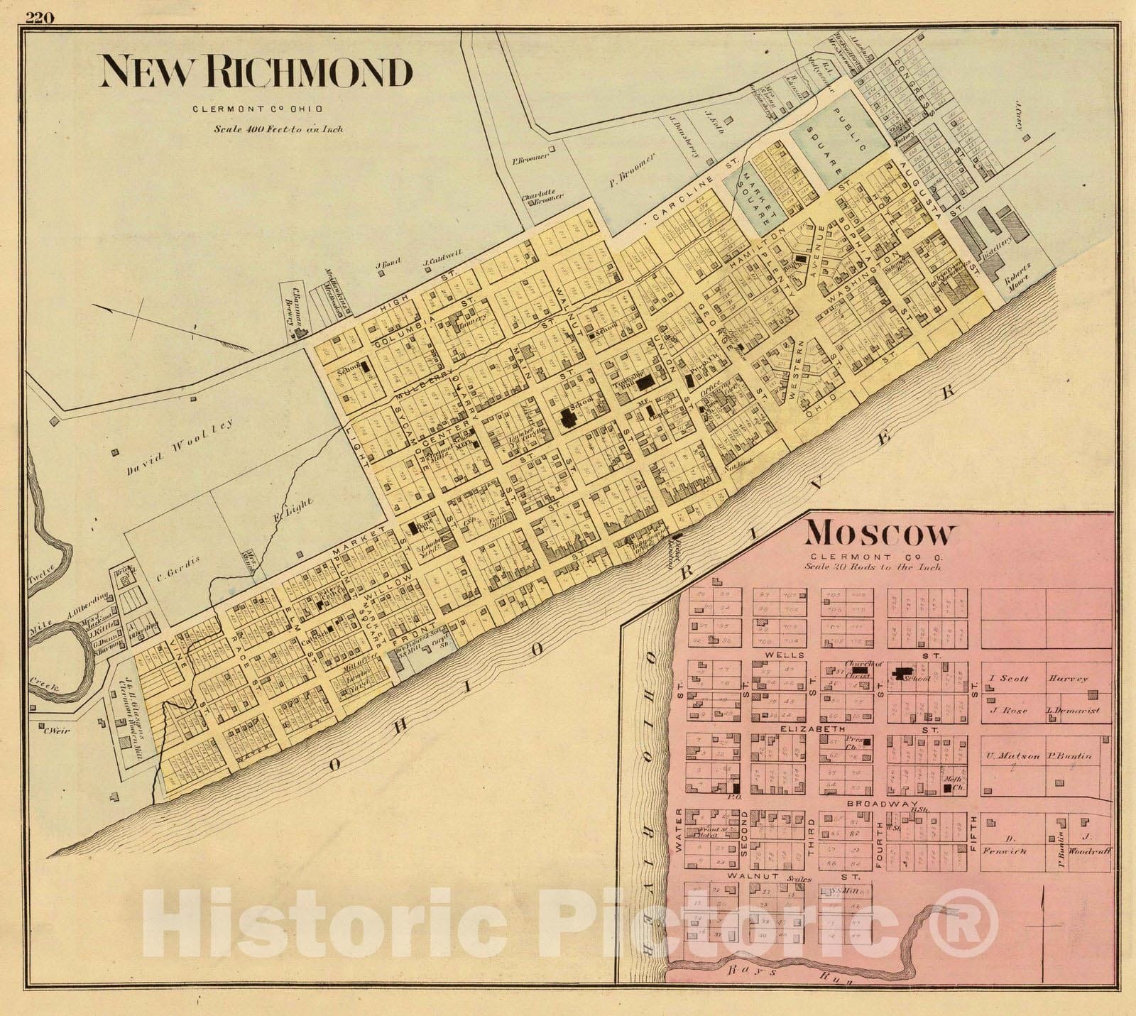 Historic Map : 1877 New Richmond, Clermont co, Ohio. (with) Moscow, Clermont Co, O. - Vintage Wall Art