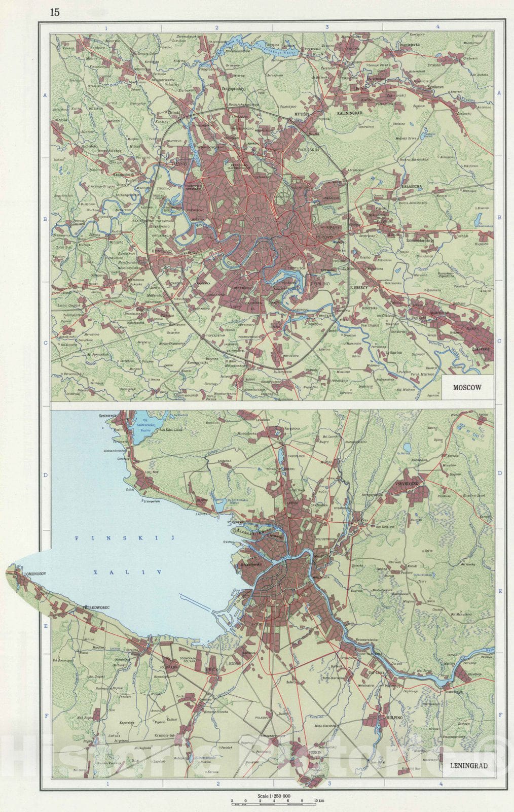 1967 15. Moscow. Leningrad. (Vicinity). The World Atlas.