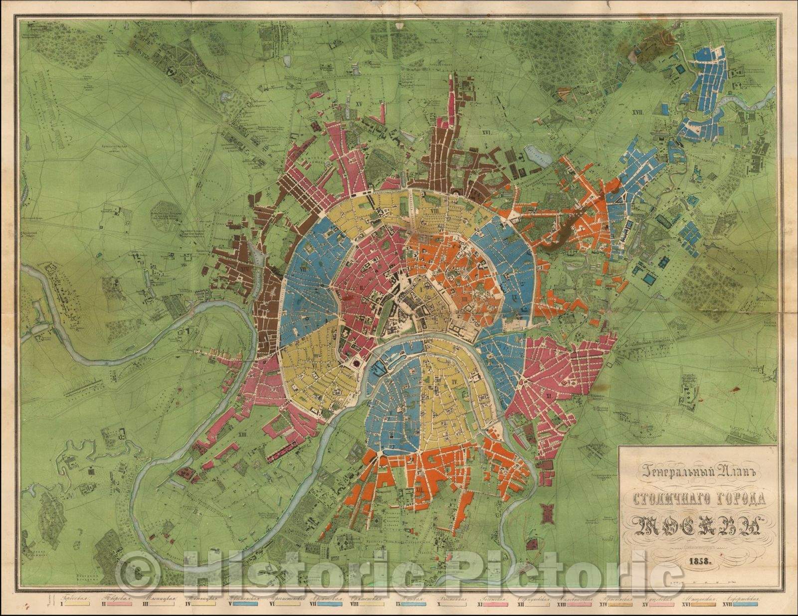Historic Map - (Moscow) / General plan STOLICHNAGO CITY MOSCOW, 1858, Nikita Ivanovich Zuev - Vintage Wall Art