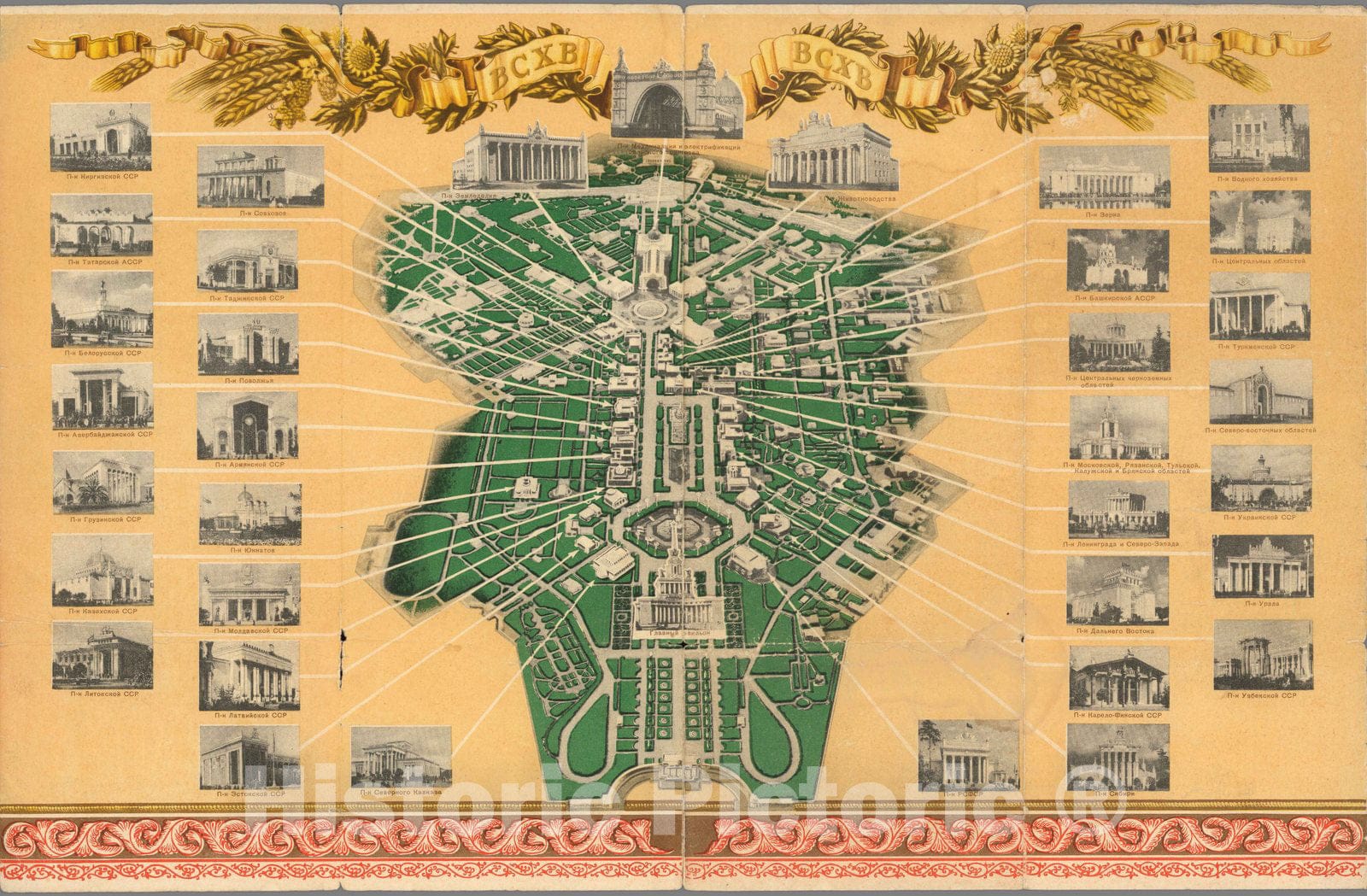 Historic Map : Russia , Moscow (Russia), Broadside, Vsesoiuznaia selskokhozisistvennaia vystavka. VSKHV 1955 , Vintage Wall Art