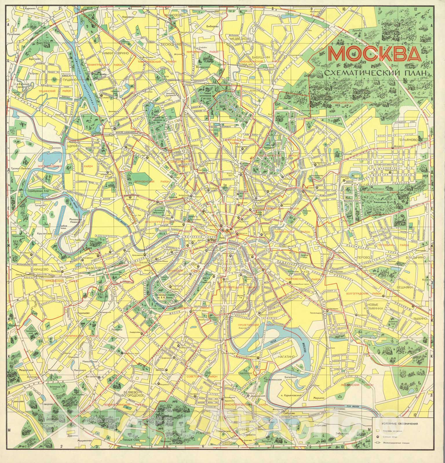 Historic Map : Russia , Moscow (Russia), Moskva skhematicheskii plan 1974 , Vintage Wall Art