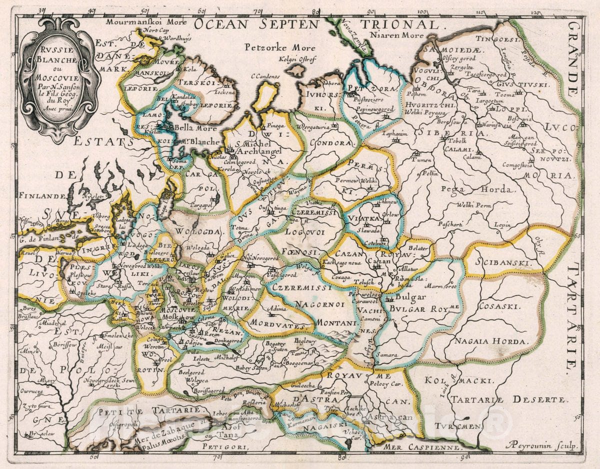 Historic Map : Russia , Moscow (Russia), Russie Blanche ou Moscovie, 1648 Atlas , Vintage Wall Art