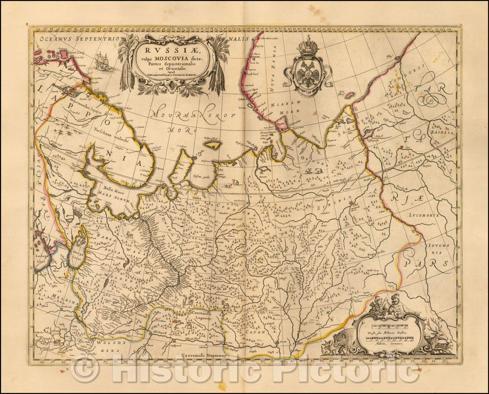 • .Historic Map - Russiae, vulgo Moscovia dictae, Partes Septentrionalis et Orientalis/Russia, Moscow generally speaking, parts of the north and east, 1690 - Vintage Wall Art