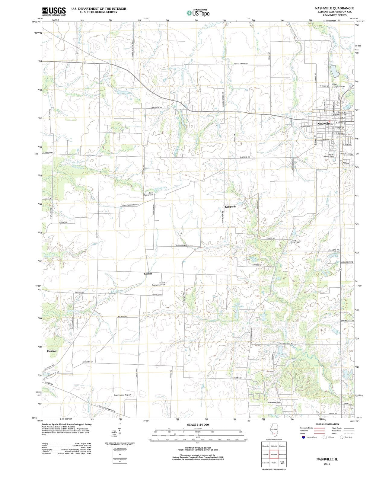 2012 Nashville, IL - Illinois - USGS Topographic Map
