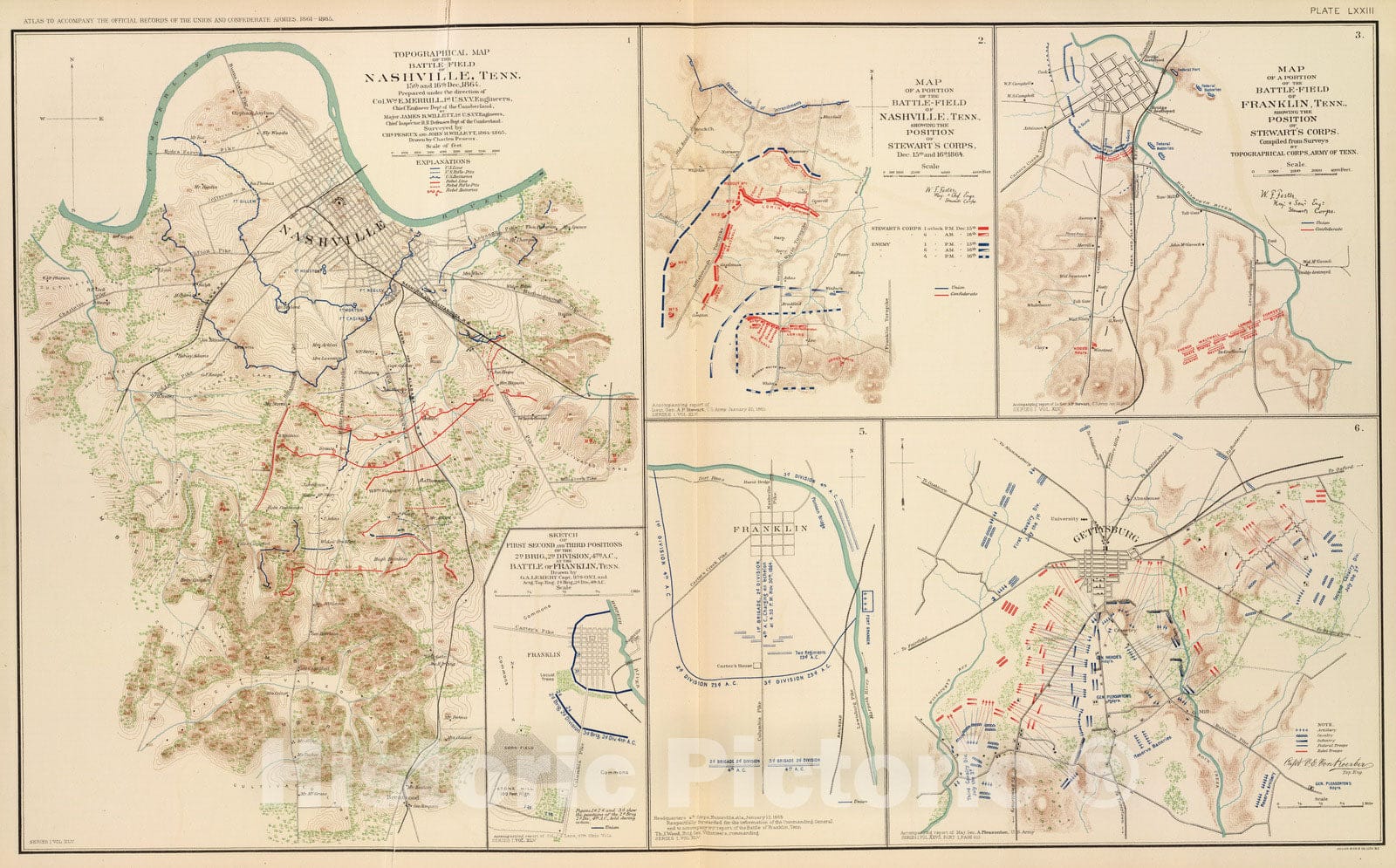 • .Historic Map : Military Atlas - 1895 Battle-field, Nashville, Tenn. - Vintage Wall Art