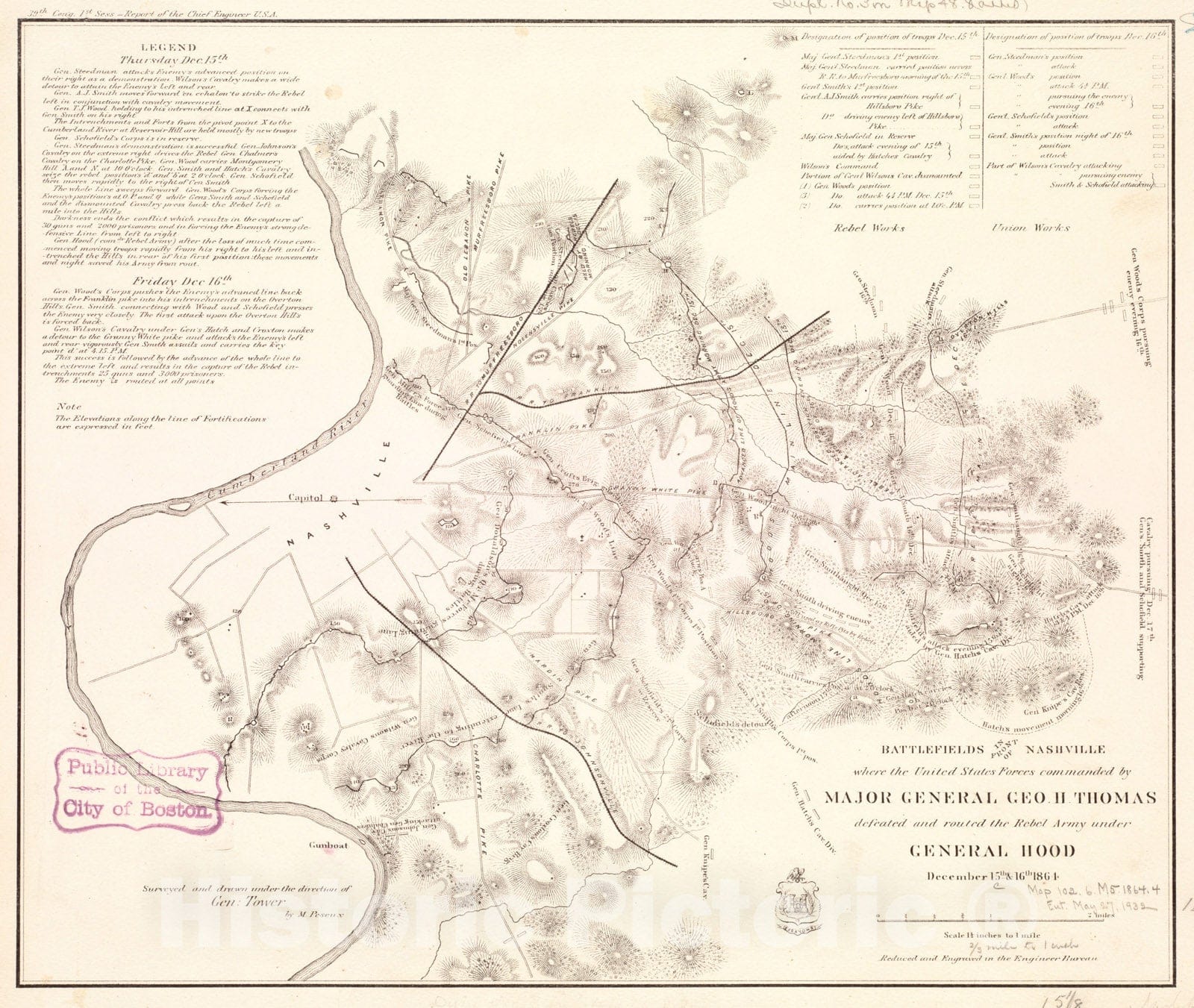 • Historical Map, Battlefields in Front of Nashville Where The United States Forces commanded by Major General Geo. H. Thomas Defeated and routed The Rebel Army, Vintage Wall Art