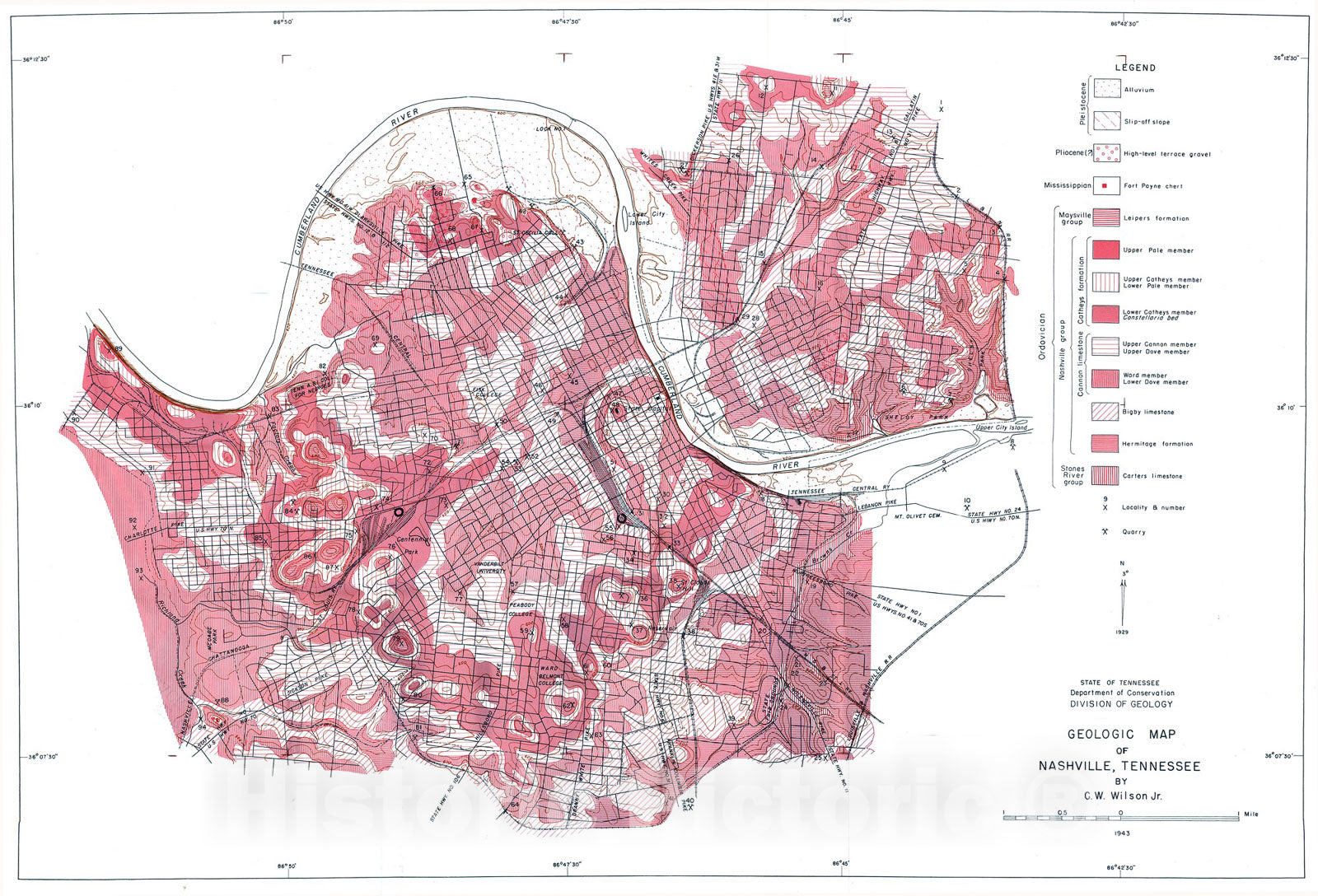 Map : The geology of Nashville [Tennessee], 1948 Cartography Wall Art :
