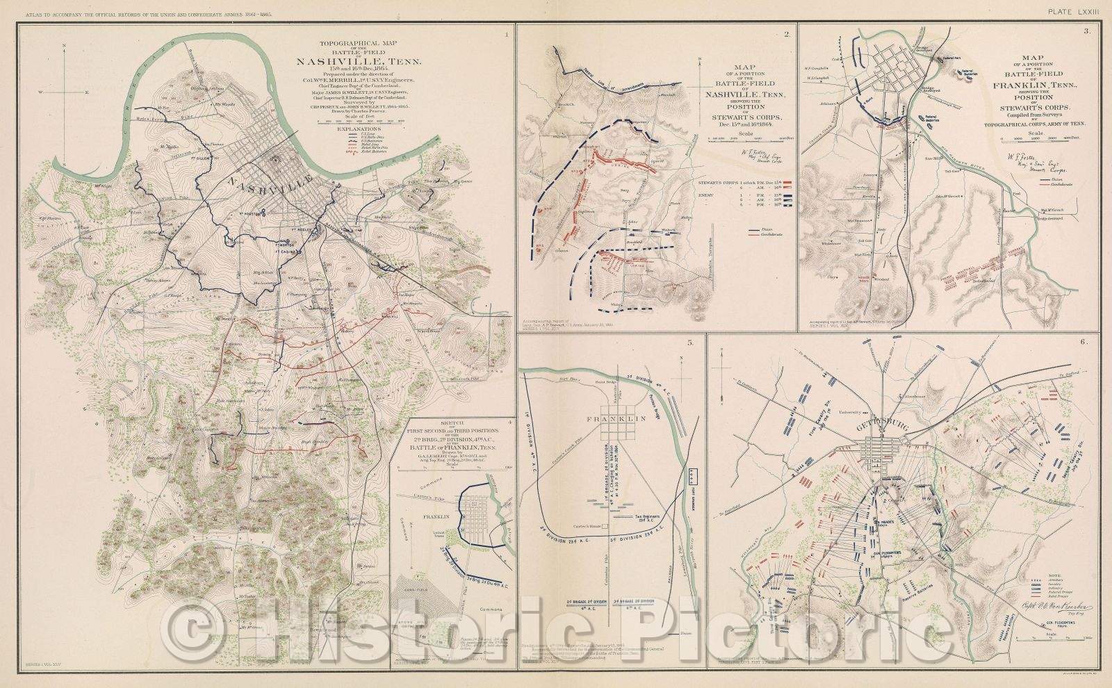 Historic Map : Topographical map of the Battle-Field of Nashville, Tenn. 15th and 16th Dec., 1864., c. 1865 , Vintage Wall Art