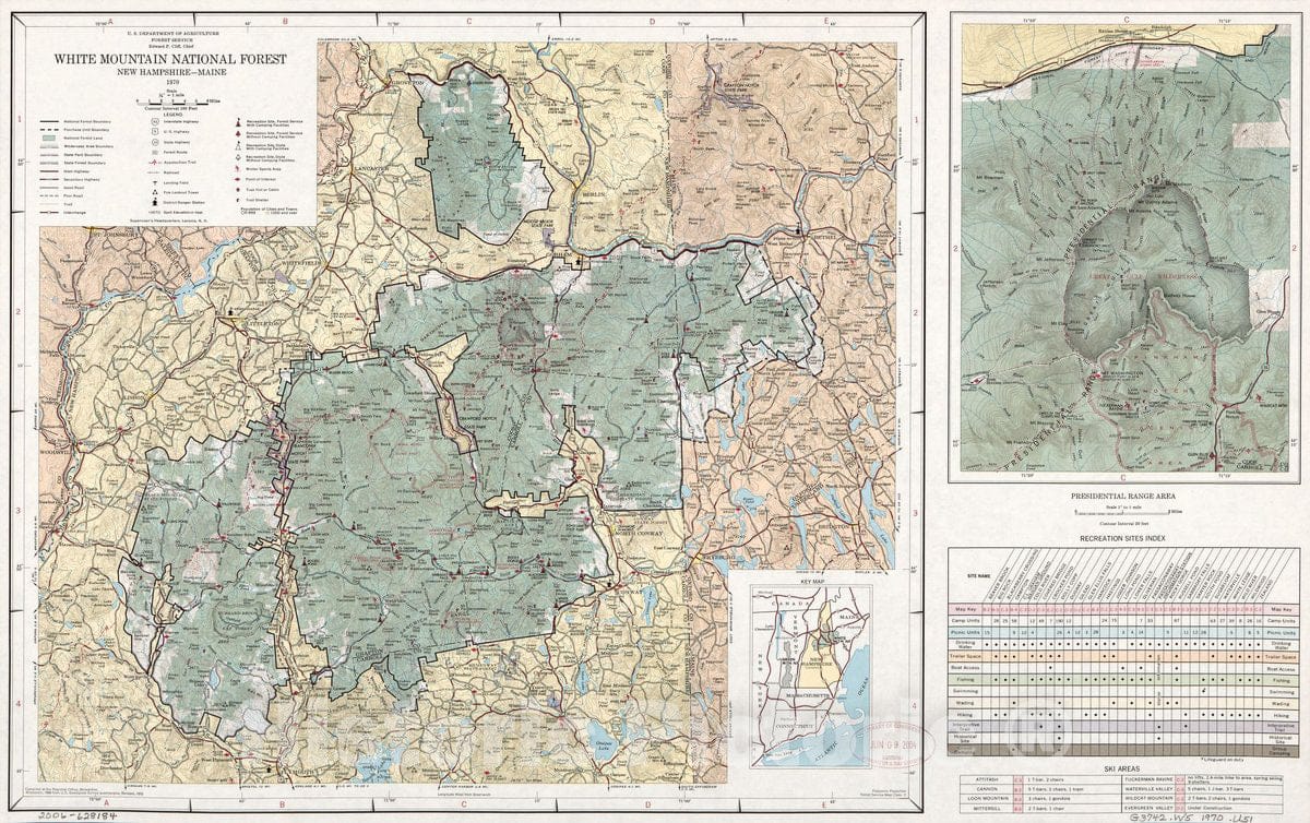 Historic 1970 Map - White Mountain National Forest, New Hampshire-Maine