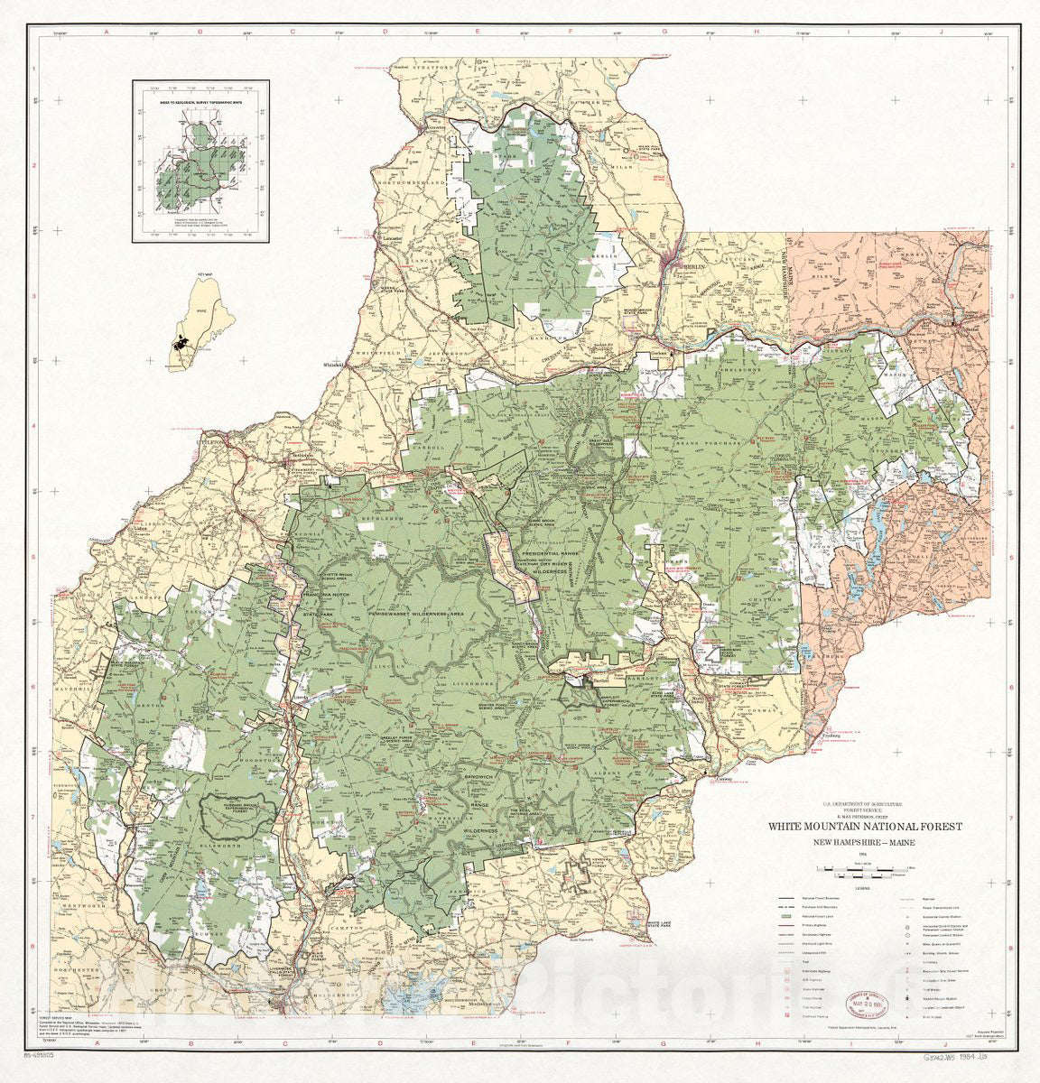• .Historic 1984 Map - White Mountain National Forest, New Hampshire-Maine