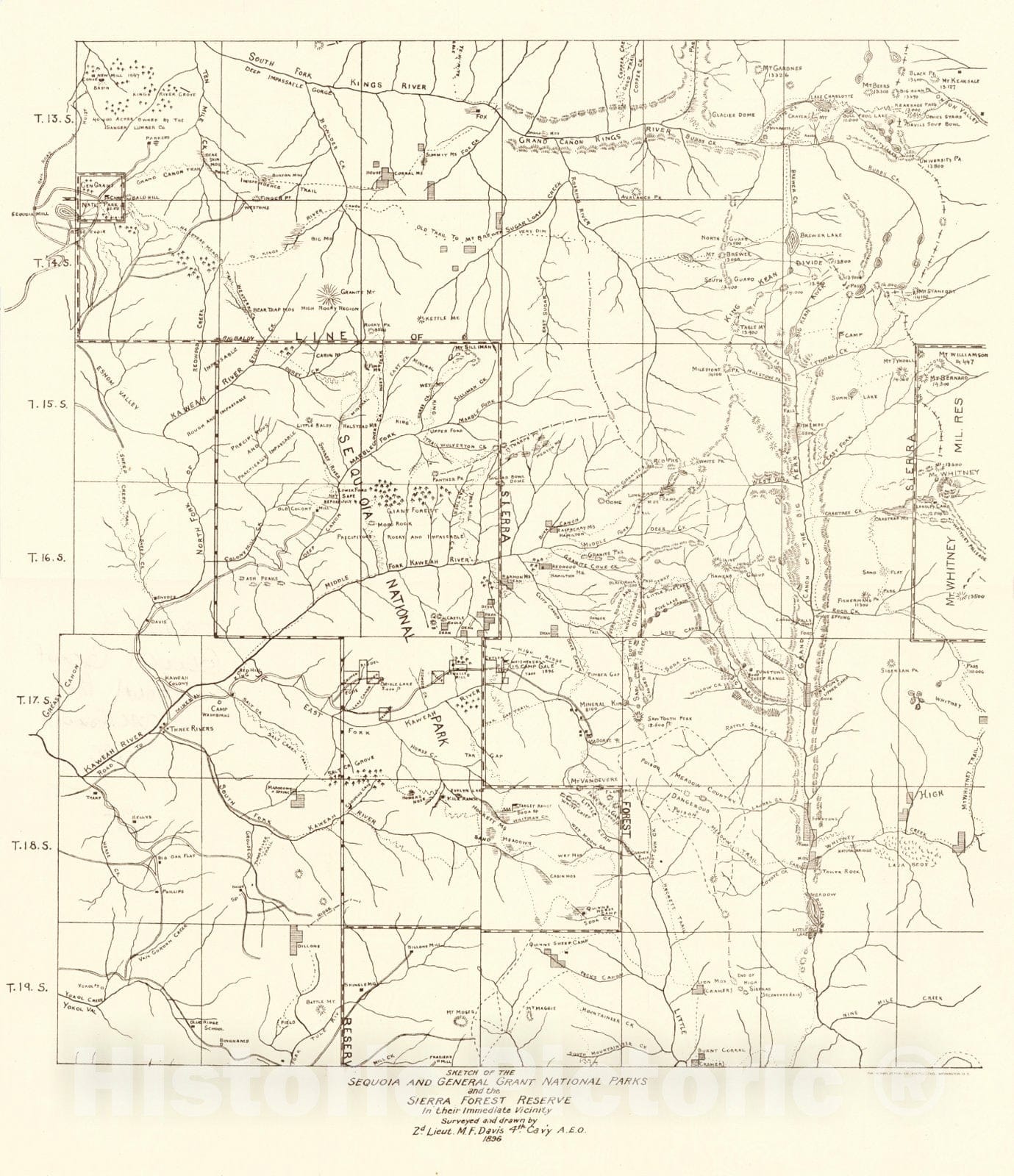 Historic Map : 1898 Sequoia and General Grant National Parks and the Sierra Forest Reserve : Vintage Wall Art