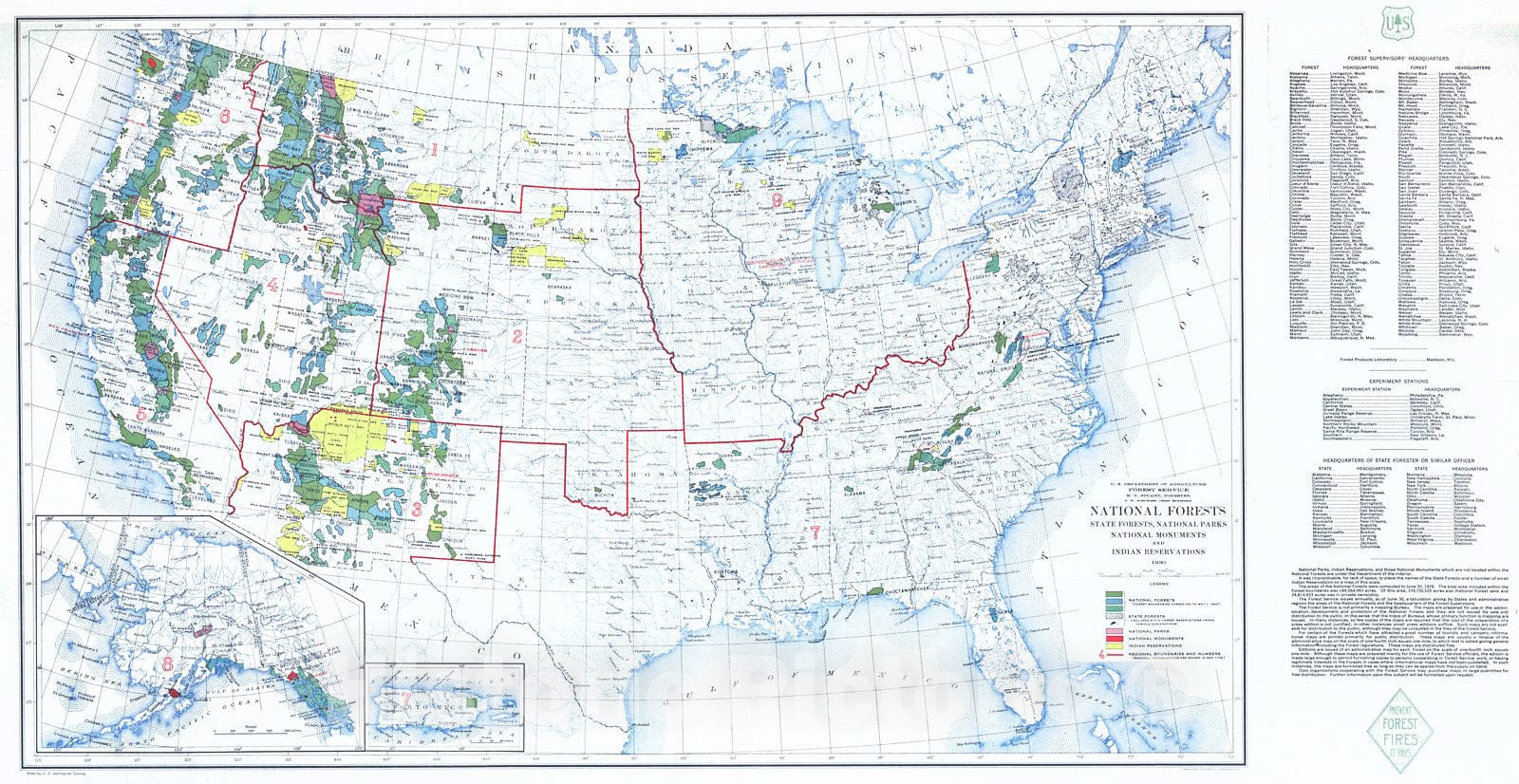 Vintage Map | 1930 National Forests, State Forests, National Parks, National Monuments and Indian Reservations | U.S. Department of Agriculture