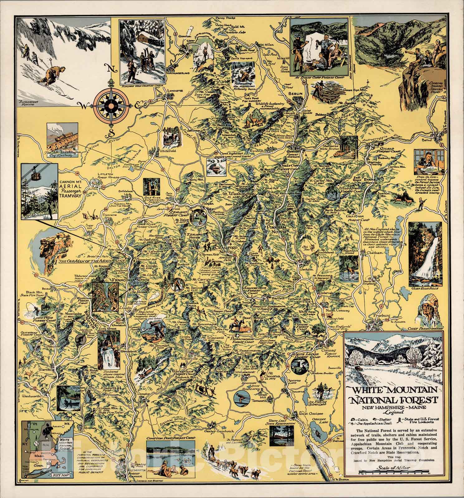 White Mountain National Forest. New Hampshire - Maine. This map issued by New Hampshire Aerial Tramway Commission. Ploverwell. (inset) Key map. | White Mountain National Forest. New Hampshire - Maine. This map issued by New Hampshire Aerial Tramway Commission. Ploverwell. (inset) Key map. |