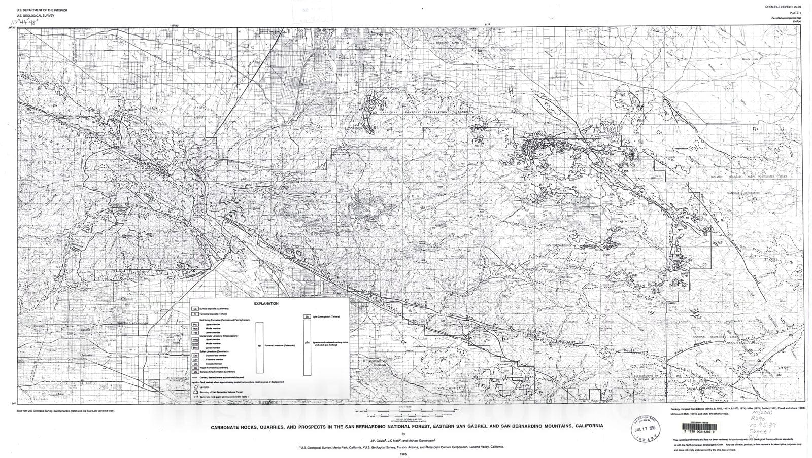 Map : Geology, geochemistry, and resource potential of carbonate rocks in the San Bernardino National Forest, California, 1995 Cartography Wall Art :