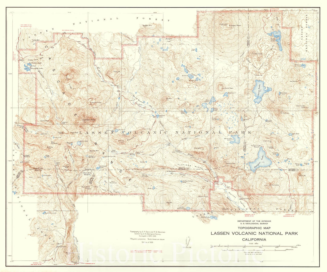 Historic Map : 1929 Lassen Volcanic National Park, California : Vintage Wall Art
