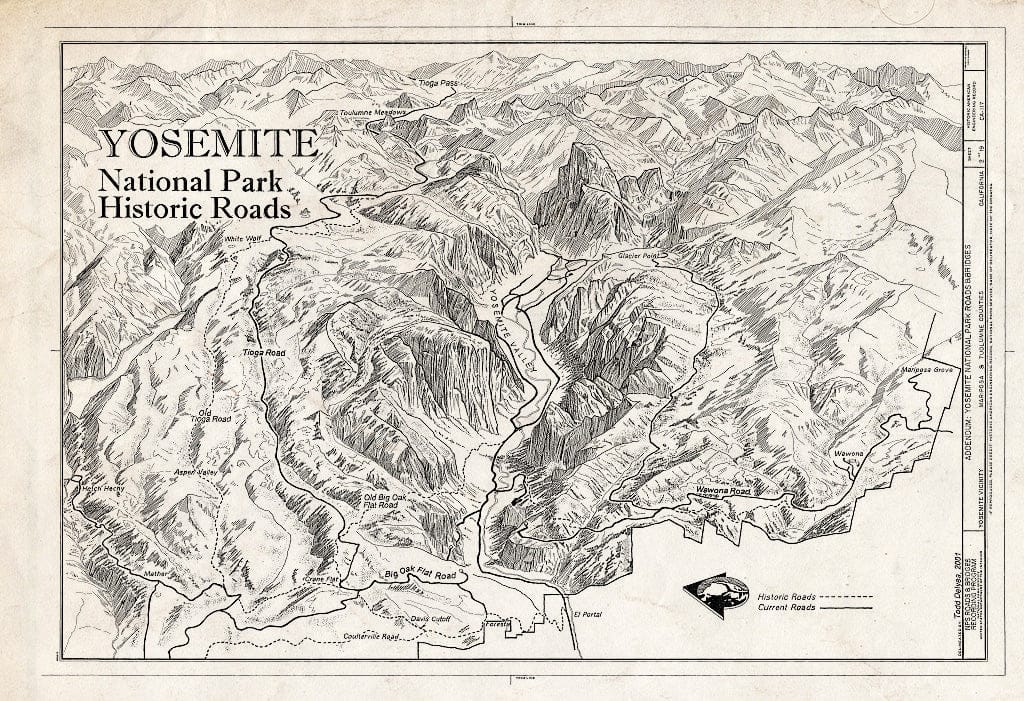 Blueprint Historical Base Map - Yosemite National Park Roads & Bridges, Yosemite Village, Mariposa County, CA