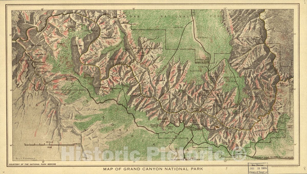 Historic 1926 Map - Map of Grand Canyon National Park.