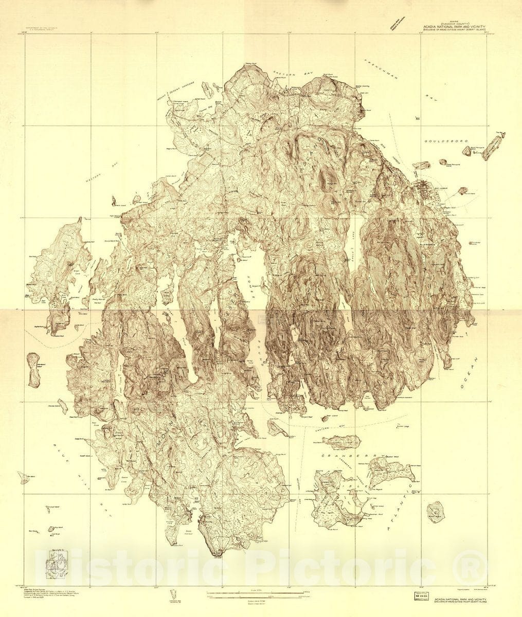 Historic 1935 Map - Maine, Hancock County, Acadia National Park and Vicinity.