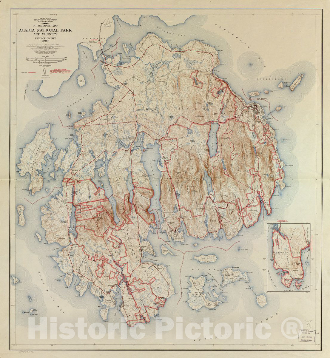 • Historic 1942 Map - Topographic Map, Acadia National Park and Vicinity, Hancock County, Maine.