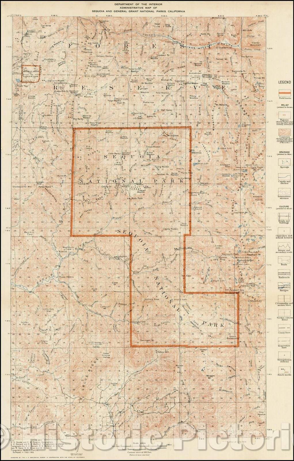 Historic Map - Administrative Map of Sequoia and General Grant National Parks, 1909, United States Department of the Interior - Vintage Wall Art
