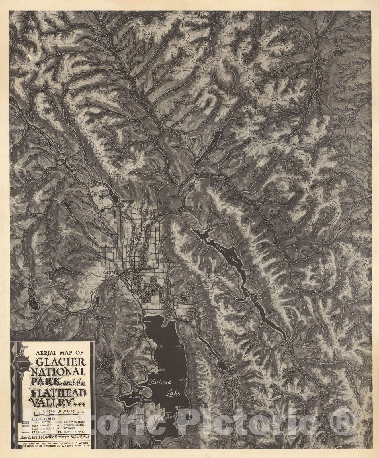 Aerial Photograph - 1954 Aerial Map of Glacier National Park and the Flathead Valley