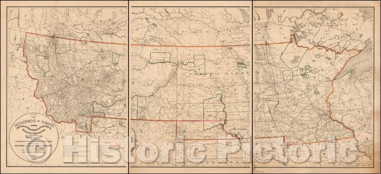Historic Map - Map of Dakota. Including Minnesota, North Dakota, Montana, Yellowstone National Park and that Portion of South Dakota, Lying North, 1891 - Vintage Wall Art