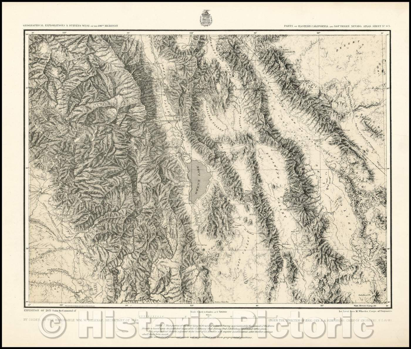 Historic Map - Parts of Eastern California and Southern Nevada, Atlas Sheet No. 65 (Owens Lake, Kings Canyon National Park, Death Valley), 1877 - Vintage Wall Art
