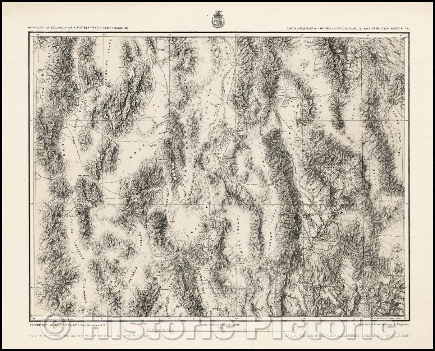 Historic Map - Parts of Eastern and Southern Nevada And Southern Utah, Atlas Sheet No. 58 (Great Basin National Park), 1877, George M. Wheeler - Vintage Wall Art