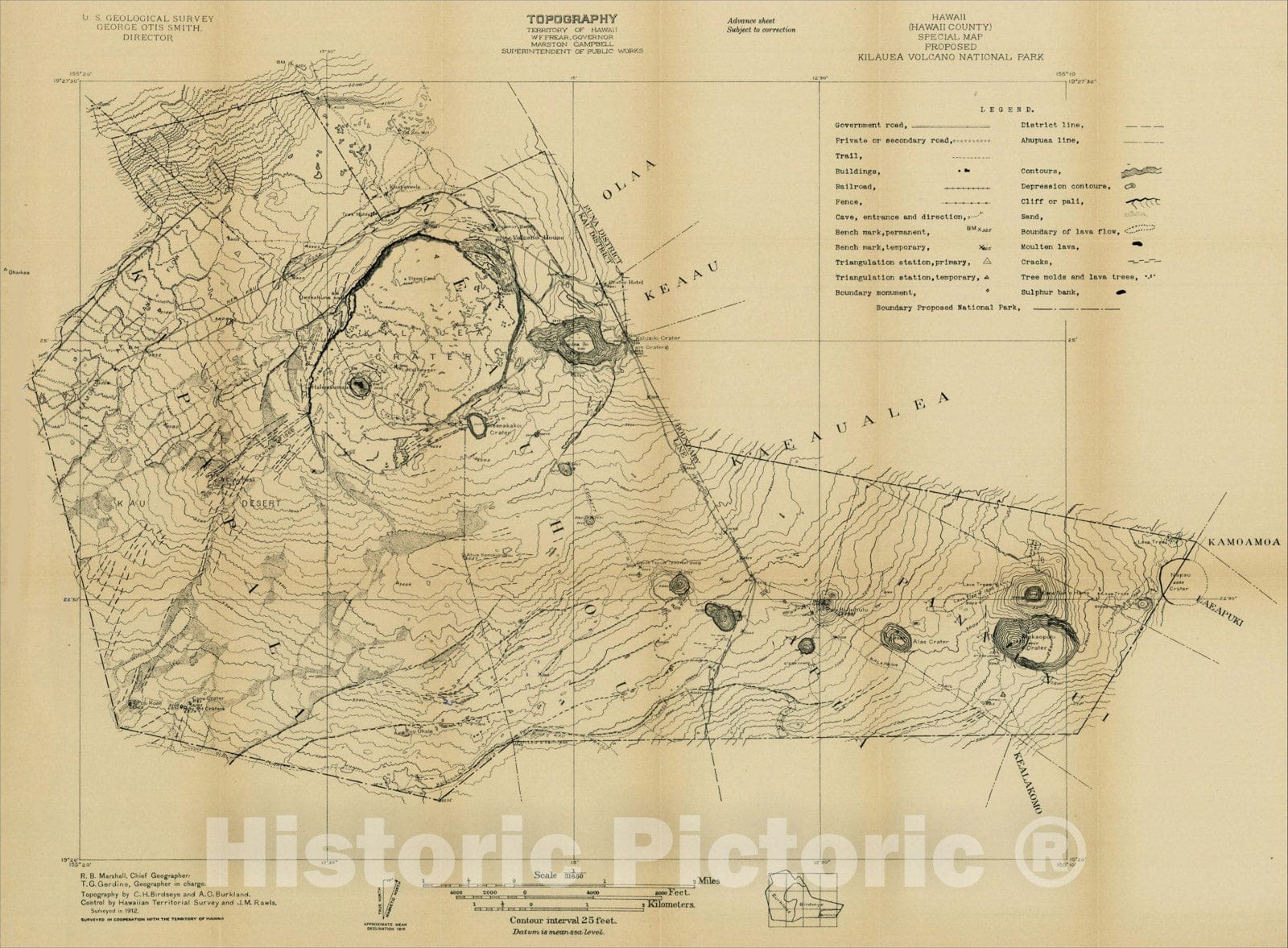 Historic Map : Special Map Proposed Kilauea Volcano National Park, c1912, U.S. Geological Survey, Vintage Wall Art
