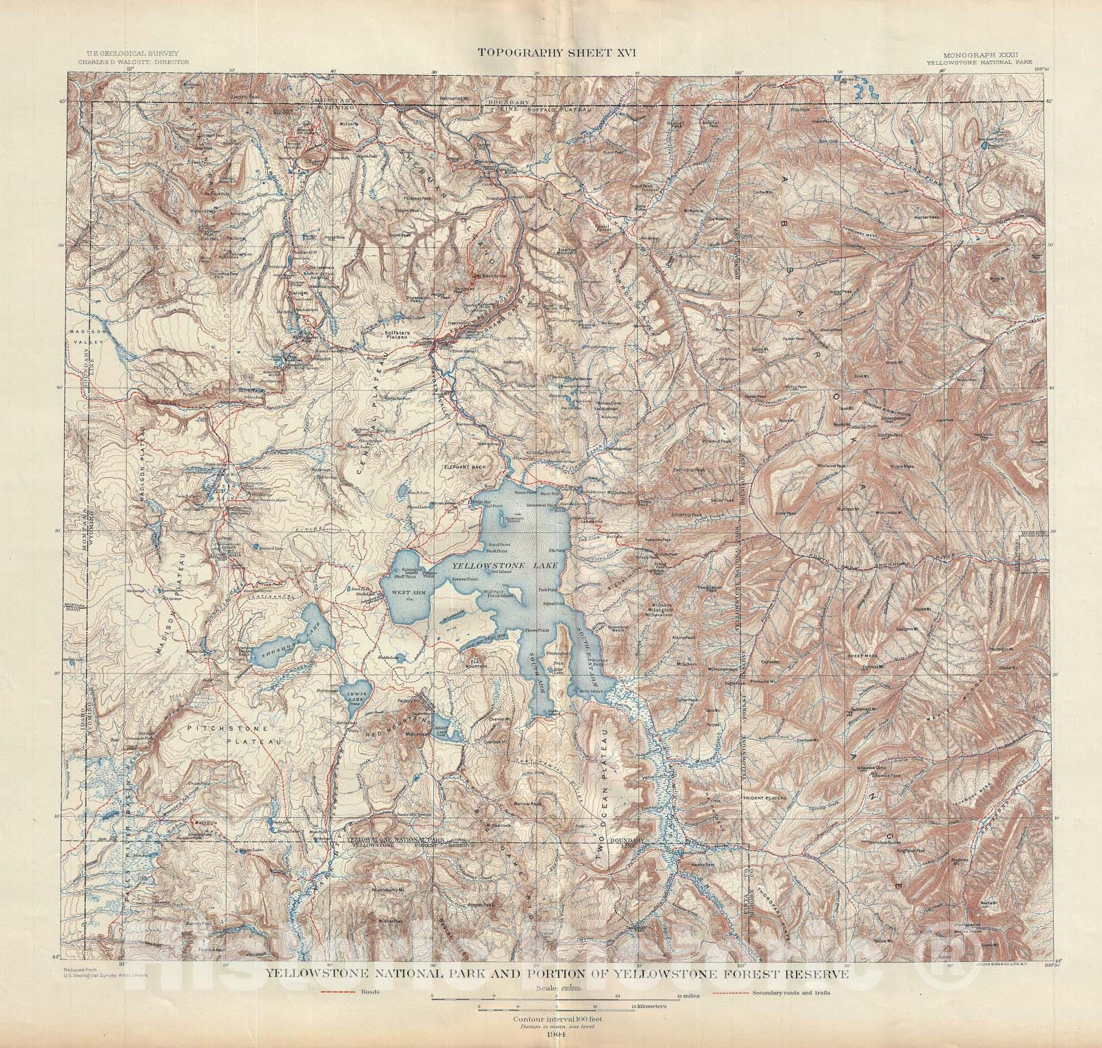 Historic Map : USGS Topographic Yellowstone National Park, 1904, Vintage Wall Art
