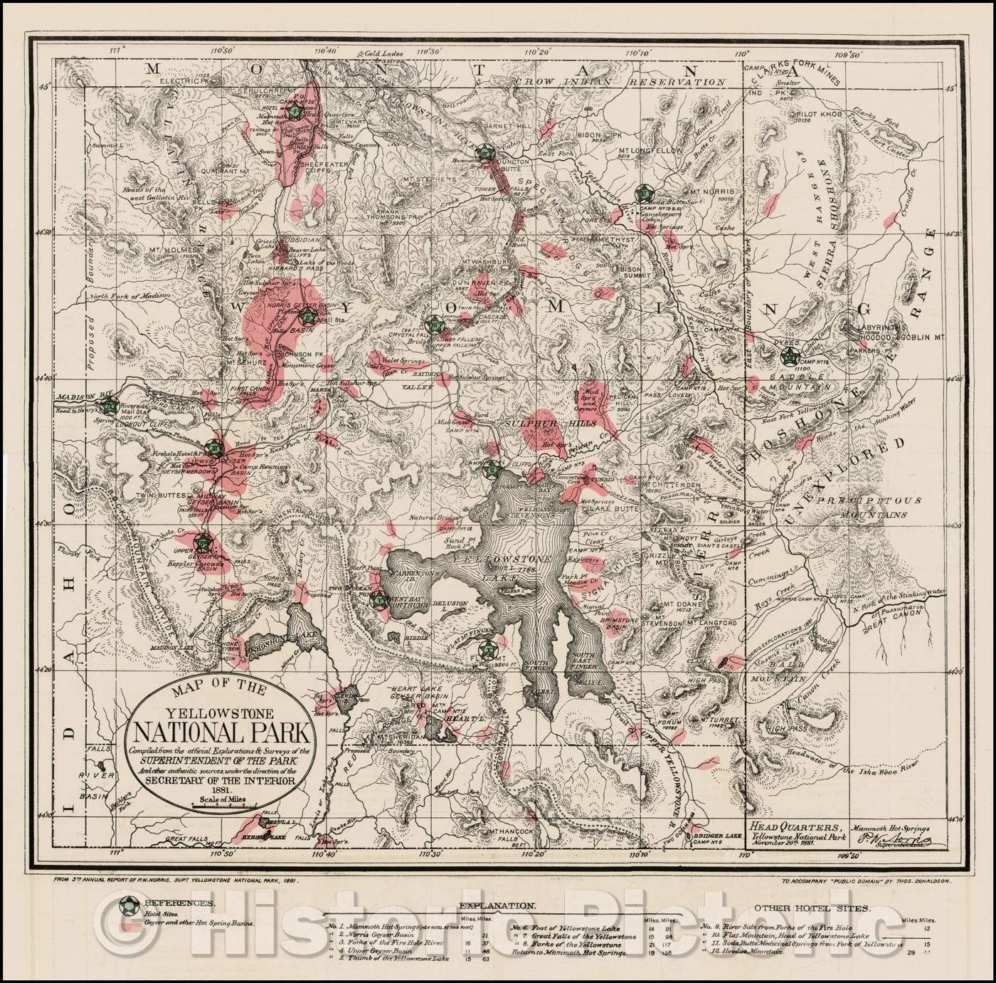 Historic Map - Map of the Yellowstone National Park, 1881, United States GPO - Vintage Wall Art