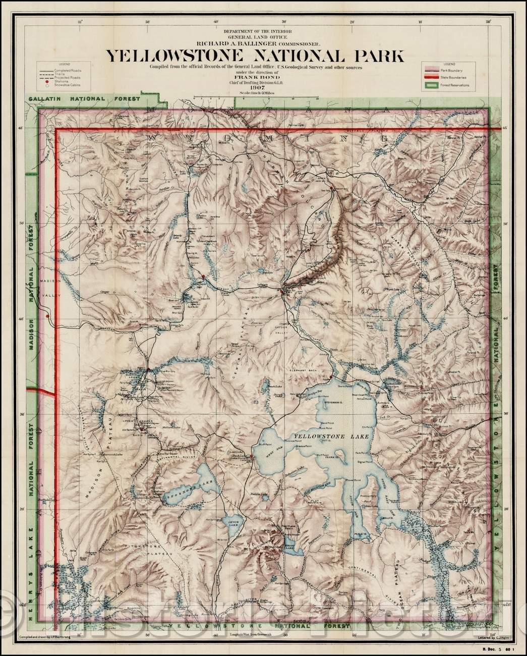 Historic Map - Yellowstone National Park, 1907, General Land Office - Vintage Wall Art