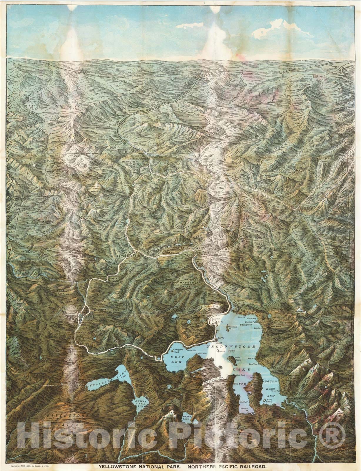 Historic Map : The Yellowstone National Park. Northern Pacific Railroad, 1895, 1895, Charles S. Fee, v1, Vintage Wall Art