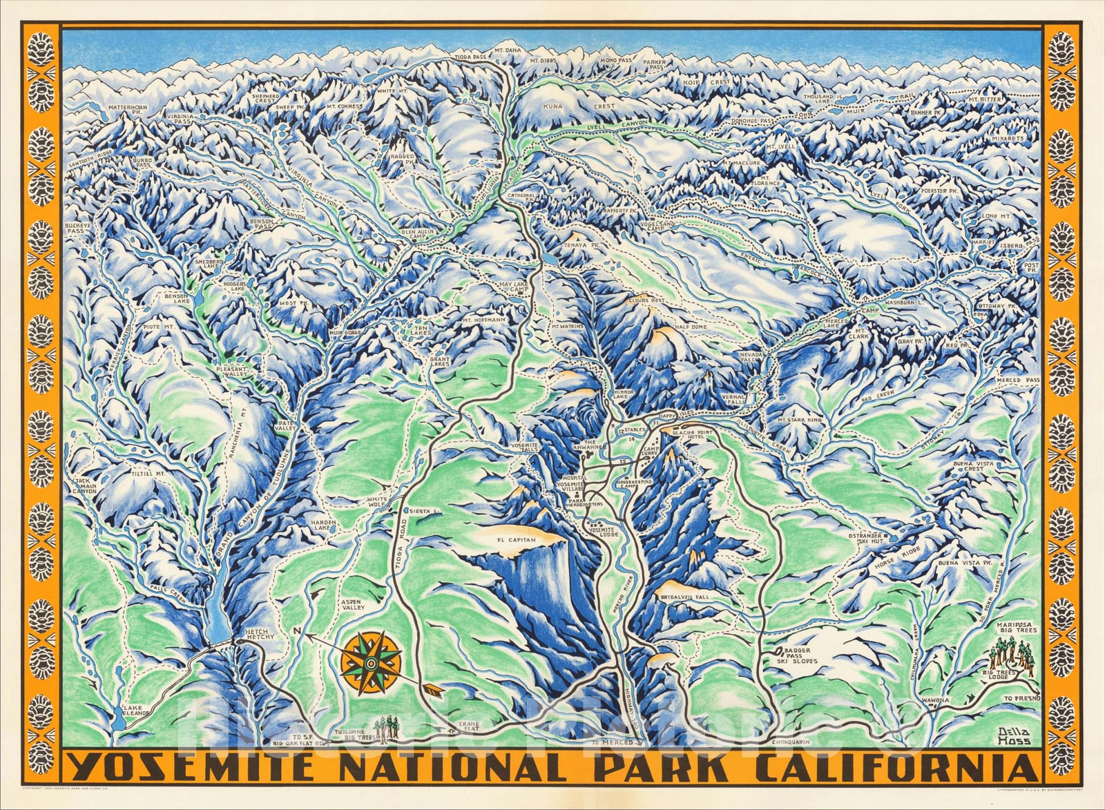 Historic Map : Yosemite National Park California, 1955, Schwabacher-Frey Co., v2, Vintage Wall Art