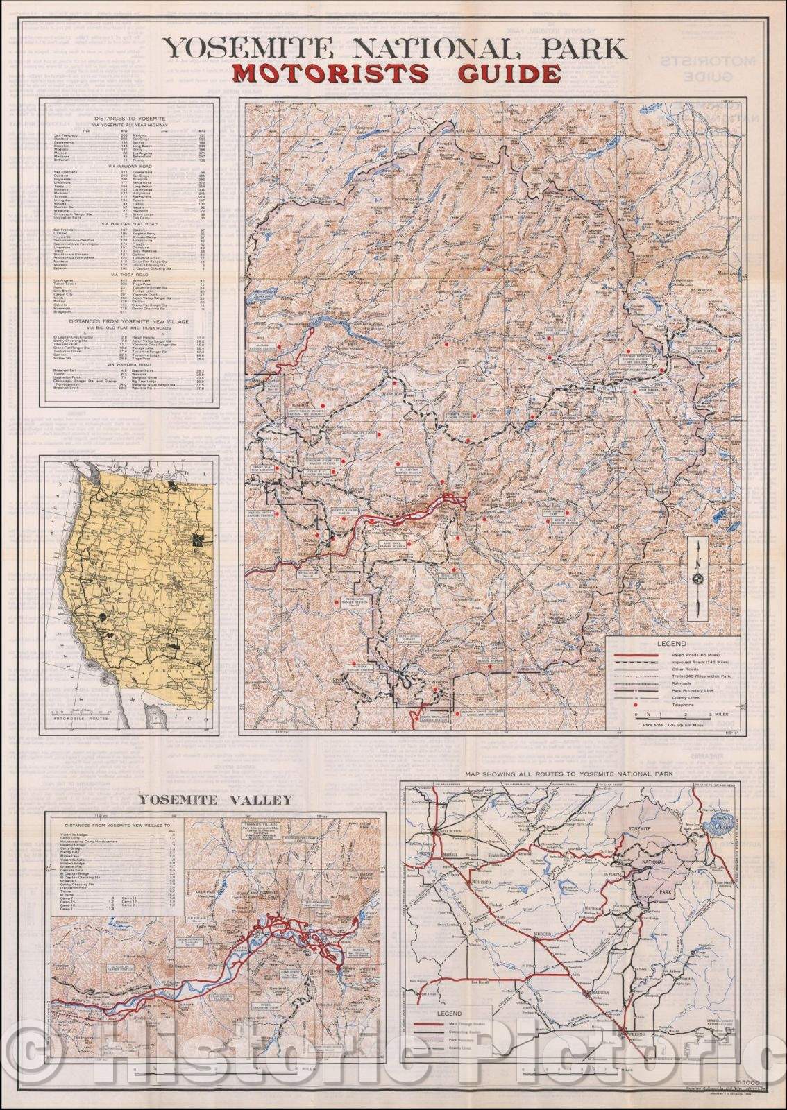 Historic Map - Yosemite National Park Motorists Guide, 1934, U.S. Geological Survey - Vintage Wall Art