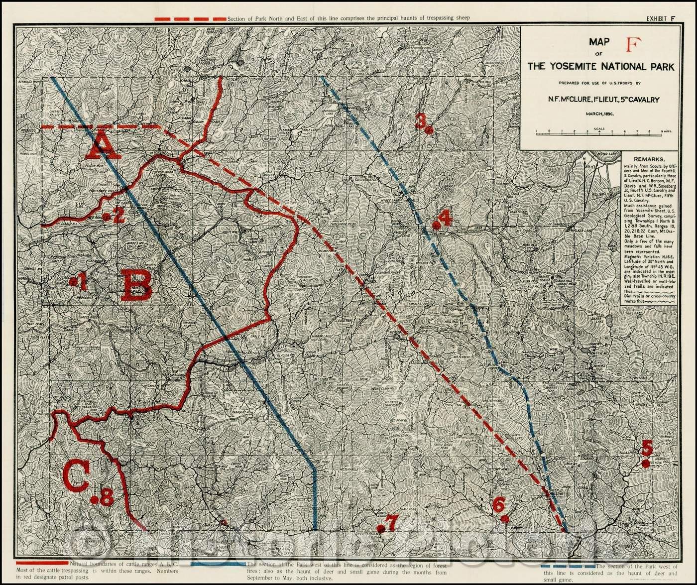 Historic Map - Map of the Yosemite National Park Prepared For Use of U.S. Troops, 1896, U.S. Government v1