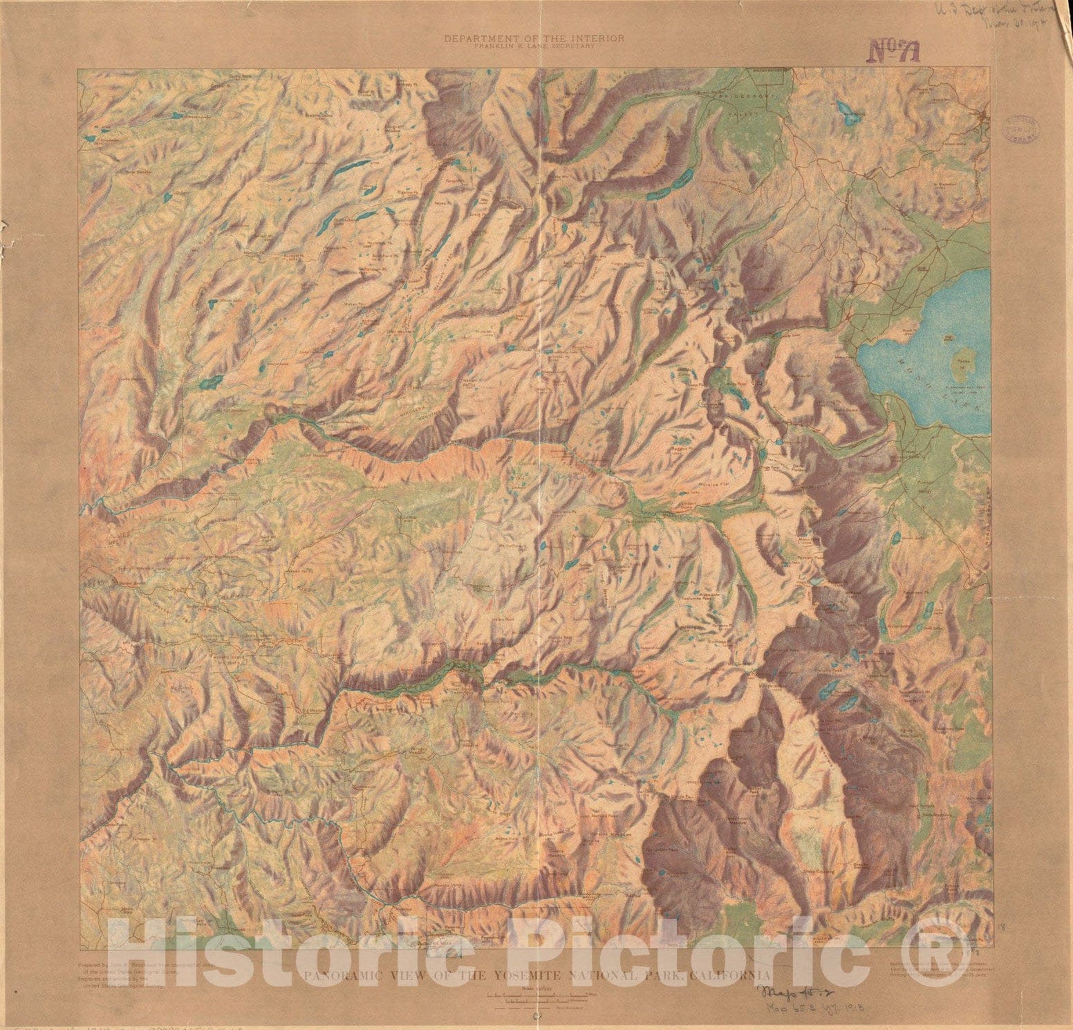• .Historical Map, 1914 Panoramic View of The Yosemite National Park, California, Vintage Wall Art