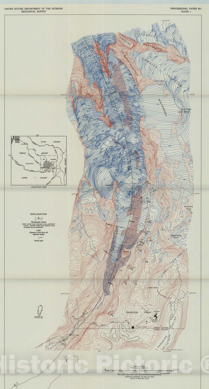 Map : Analysis of a 24-year photographic record of Nisqually Glacier, Mount Rainier National Park, Washington, 1969 Cartography Wall Art :