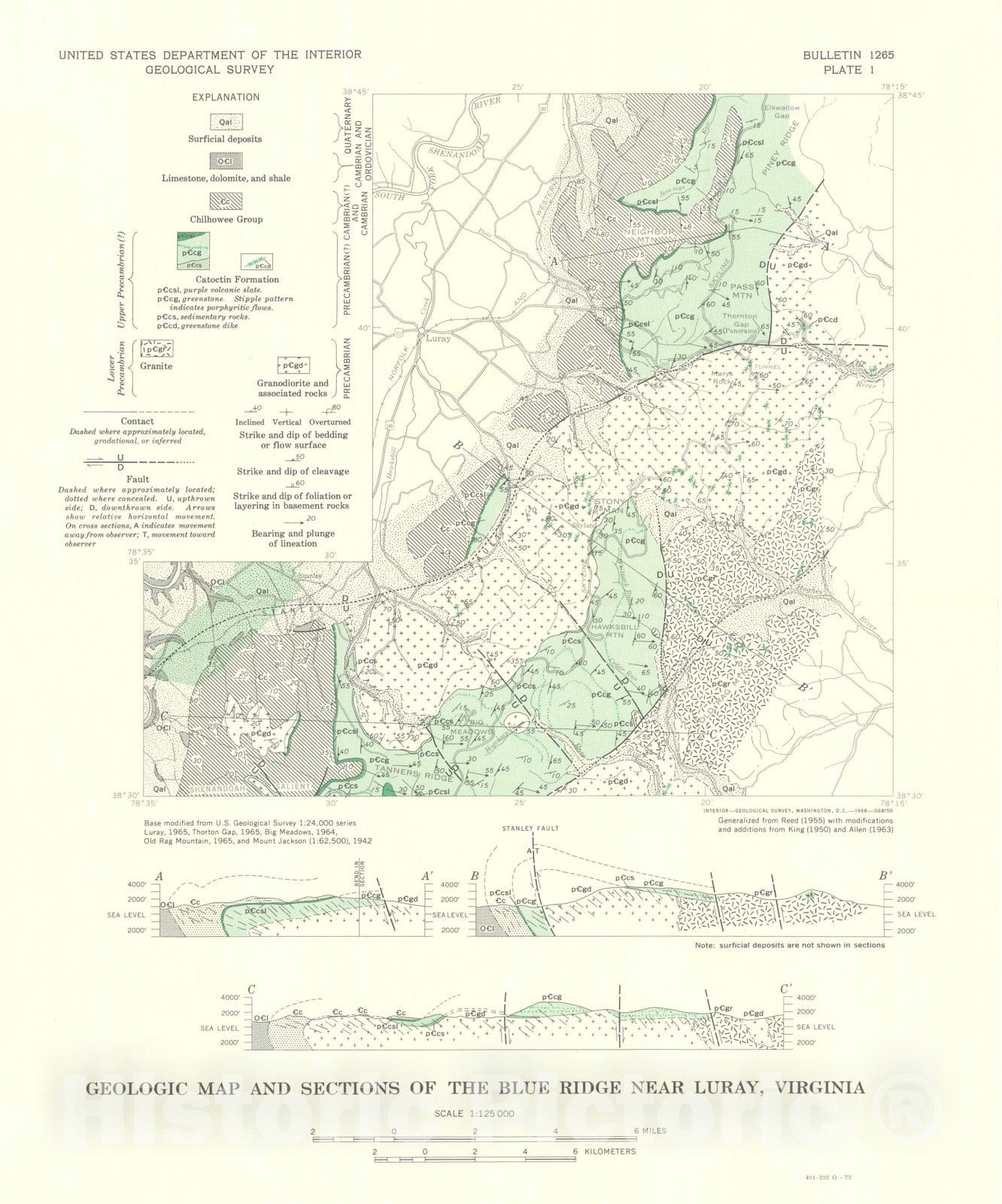 Map : Ancient lavas in Shenandoah National Park, near Luray, Virginia, 1969 Cartography Wall Art :