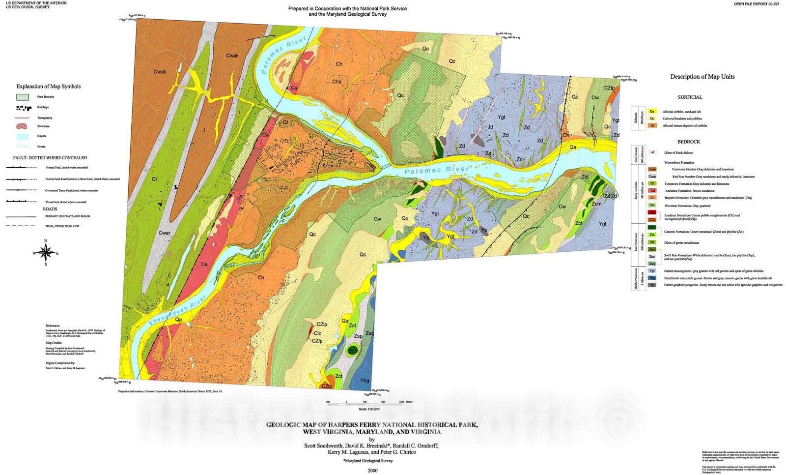 Map : Digital geologic map of the Harpers Ferry National Historic Park, 2000 Cartography Wall Art :