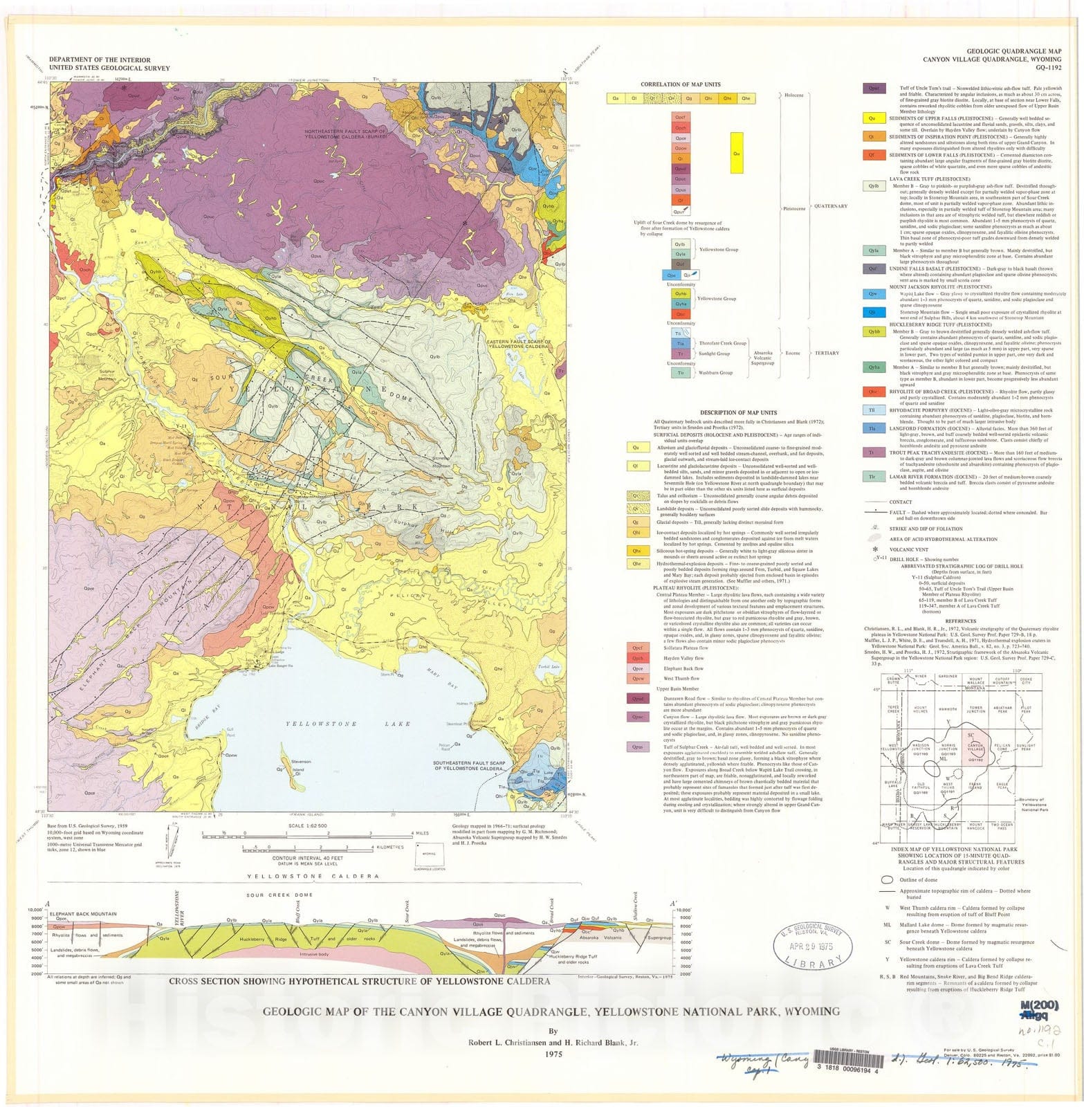 Map : Geologic map of the Canyon Village quadrangle, Yellowstone National Park, Wyoming, 1975 Cartography Wall Art :