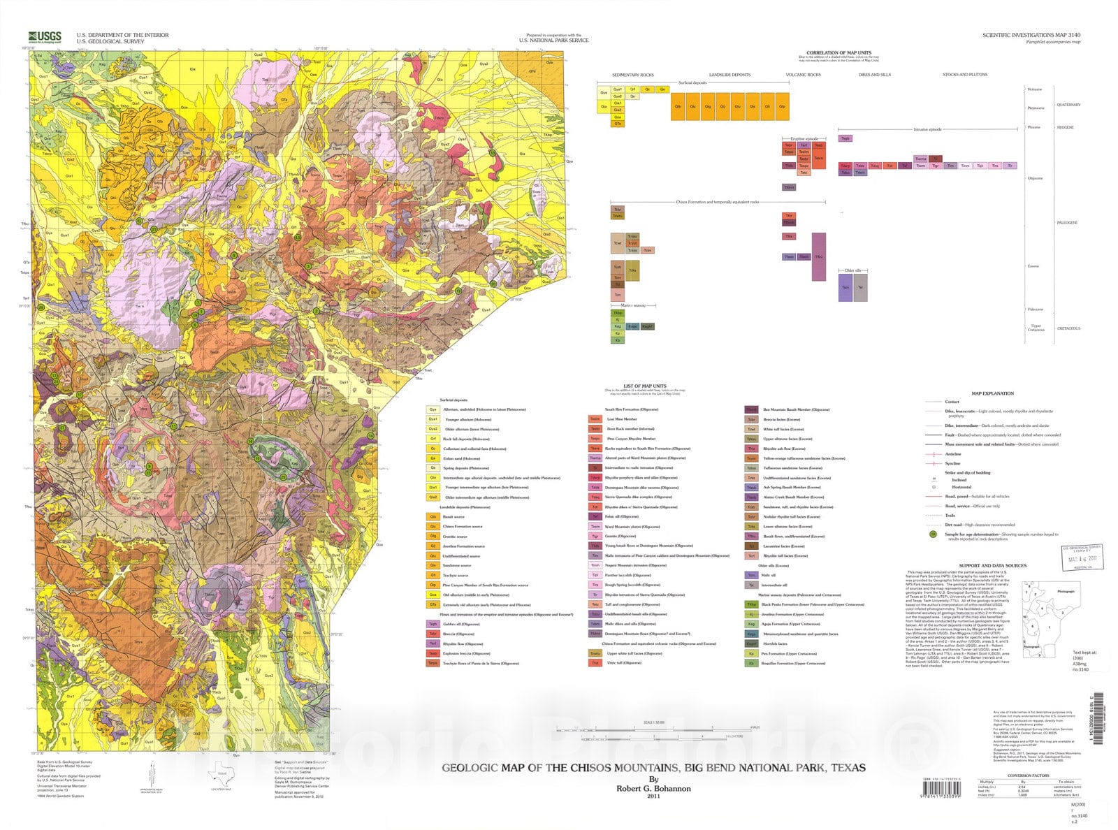 Map : Geologic map of the Chisos Mountains, Big Bend National Park, Texas, 2011 Cartography Wall Art :