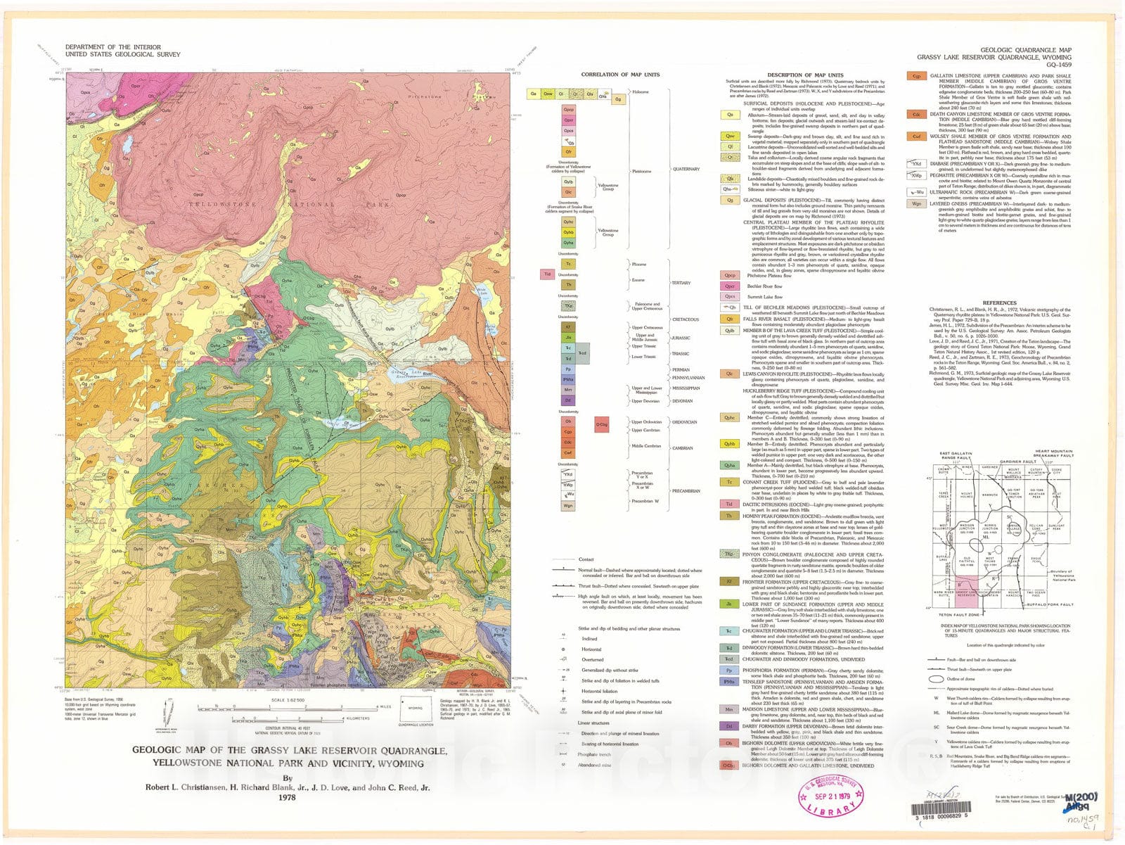 Map : Geologic map of the Grassy Lake Reservoir quadrangle, Yellowstone National Park and vicinity, Wyoming, 1978 Cartography Wall Art :