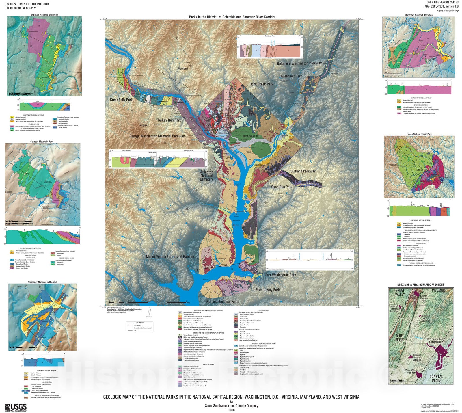 Map : Geologic map of the National Parks, Washington, D.C.; Virginia, Maryland, and West Virginia [Antietam National Battlefield], 2006 Cartography Wall Art :