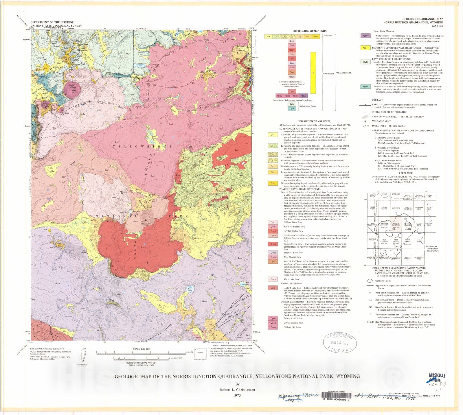 Map : Geologic map of the Norris Junction quadrangle, Yellowstone National Park, Wyoming, 1975 Cartography Wall Art :
