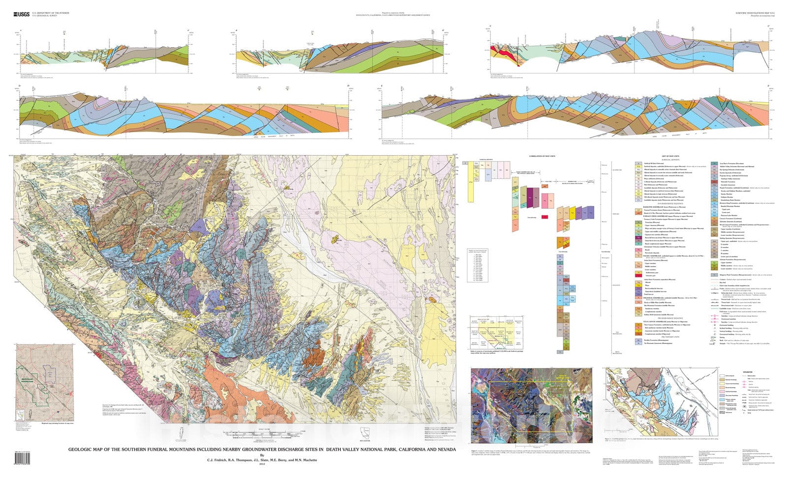 • .Map : Geologic map of the southern Funeral Mountains including nearby groundwater discharge sites in Death Valley National Park, California and Nevada, 2012 Cartography Wall Art :