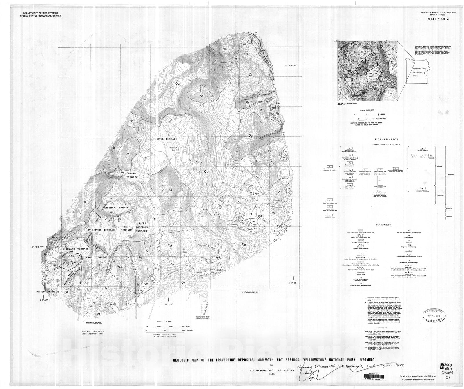Map : Geologic map of the travertine deposits, Mammoth Hot Springs, Yellowstone National Park, Wyoming, 1975 Cartography Wall Art :