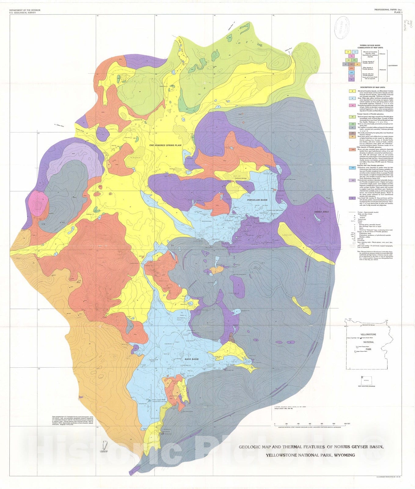 Map : The geology and remarkable thermal activity of Norris Geyser Basin, Yellowstone National Park, Wyoming, 1988 Cartography Wall Art :