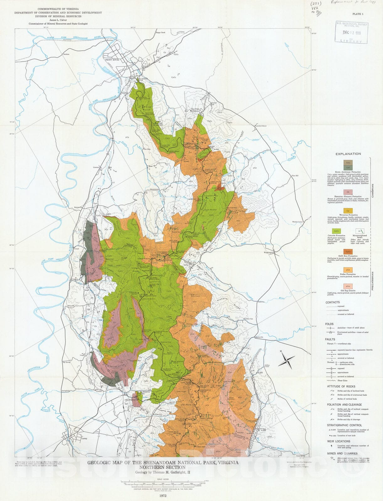 Map : Geology of the Shenandoah National Park, Virginia, 1976 Cartography Wall Art :