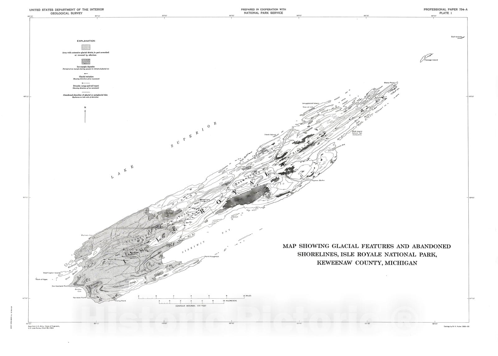 Map : Glacial and postglacial geologic history of Isle Royale National Park, Michigan, 1973 Cartography Wall Art :
